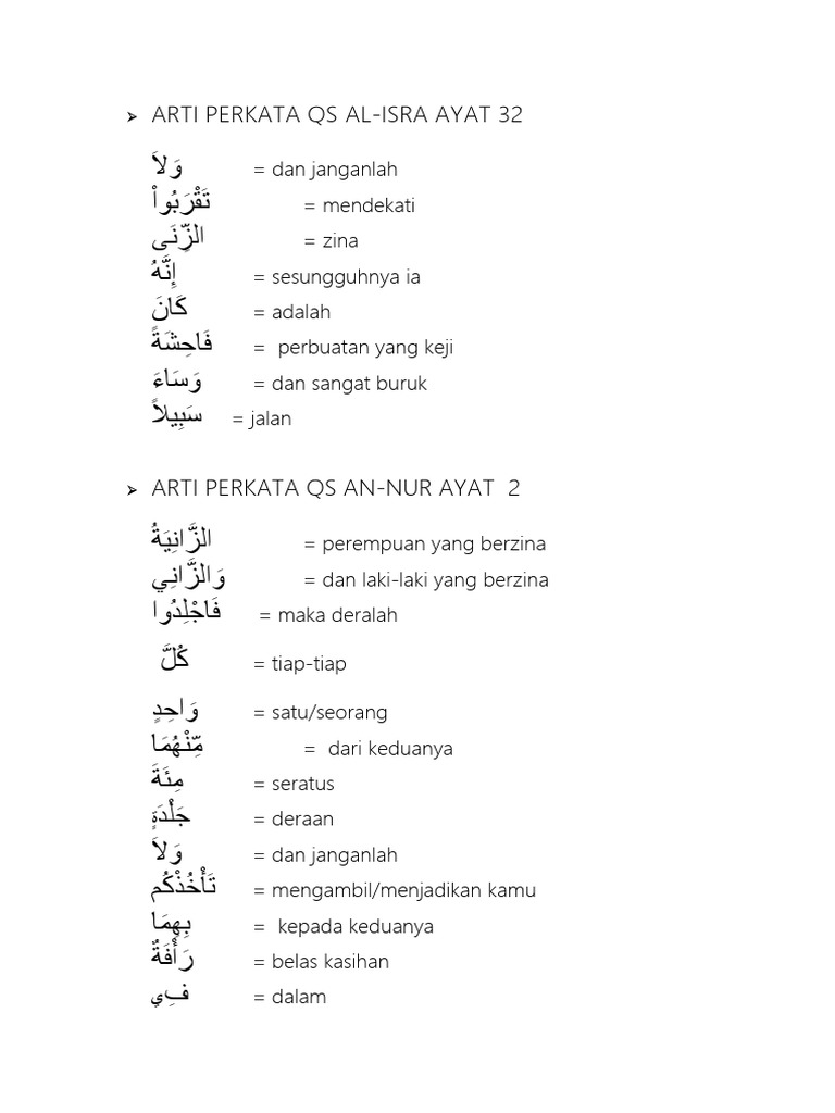 Surah al isra ayat 32 latin dan artinya. Tafsir quran surat al isra ayat 32. Asbabun nuzul dan isi kandungan surat al isra ayat 32. Sesungguhnya zina itu adalah suatu perbuatan yang keji. Al isra ayat 32 terjemah perkata kutipan kali ini mengenai arti perkata akan dibahas surat al isra ayat 2 yang mana pada ayat ini allah menegaskan kepada kita untuk menghindari perbuatan zina.