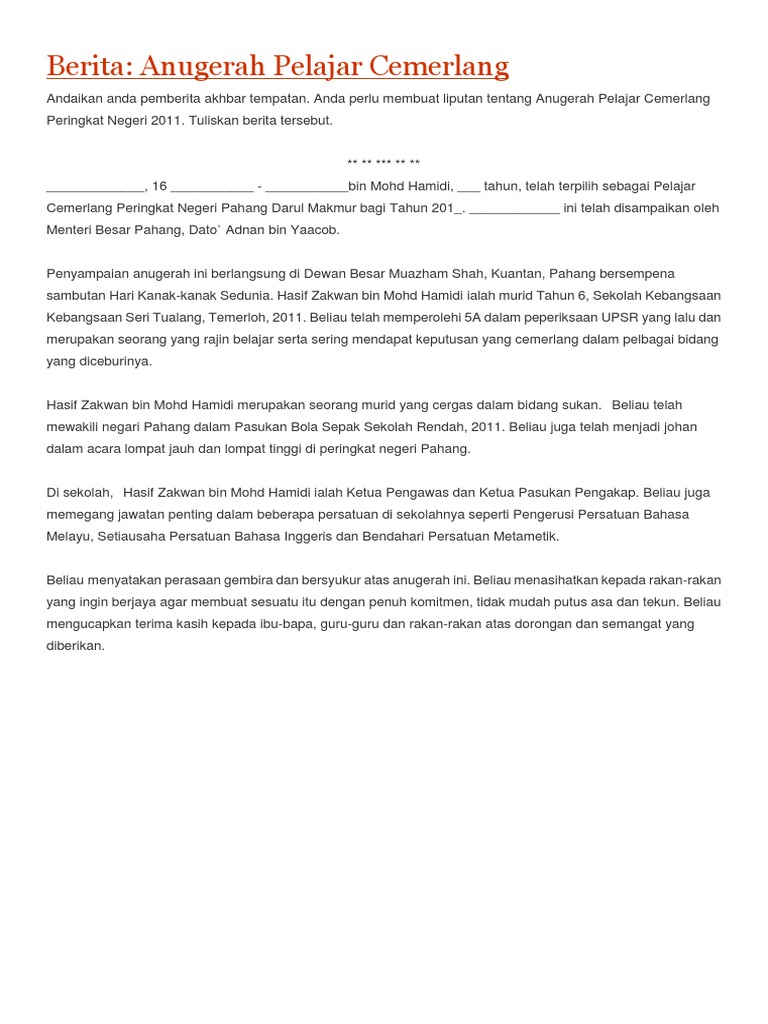 Jenis surat kiriman tidak rasmi. Saya berharap dapat menjawab soalan peperiksaan dengan baik dan mendapat keputusan yang cemerlang. Untuk mendapatkan teknik format dan contoh surat tidak rasmi klik. Sekarang ini adinda sedang menanti keputusannya dengan penuh debaran.