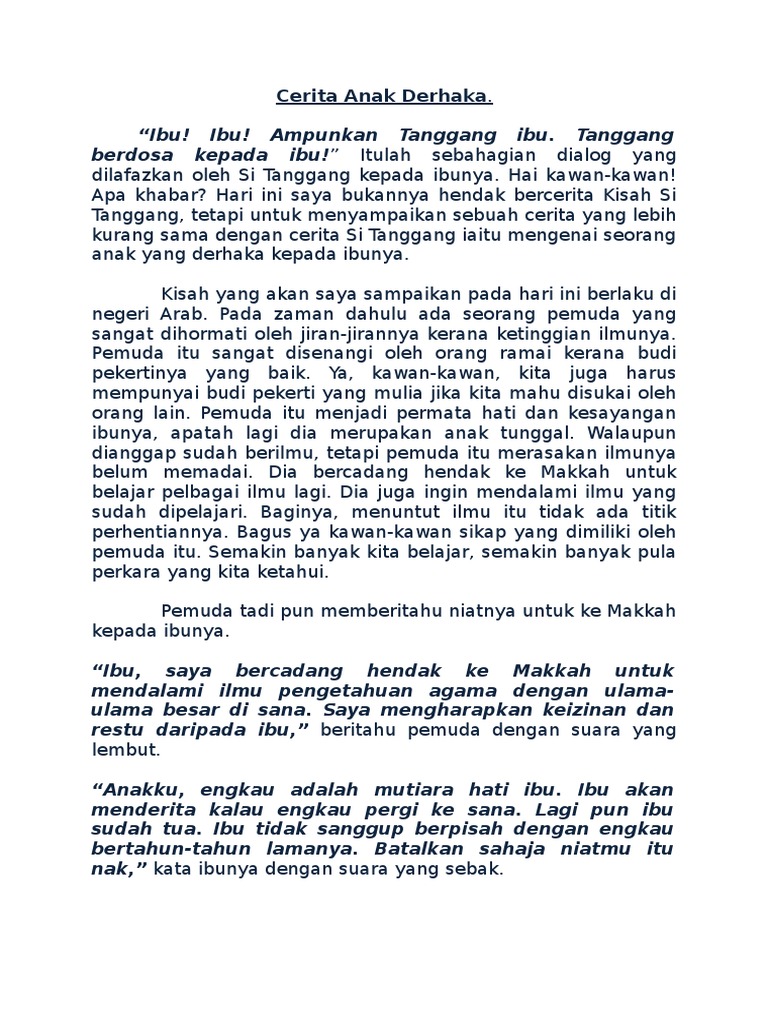 Anak derhaka si tanggang atau malin kundang may 2010 2 apr 2010 19 mar 2010 13 feb 2010 26 jan 2010 59 2009 142 dec 2009 25. Si tanggang merupakan seorang anak yang derhaka kepada ibu bapanya. Suami isteri mempunyai seorang anak lelaki yang bernama si tanggang. Pada suatu hari si tanggang telah ditangkap nakhoda kapal dan dipaksa untuk melakukan kerja kerja di atas kapal.