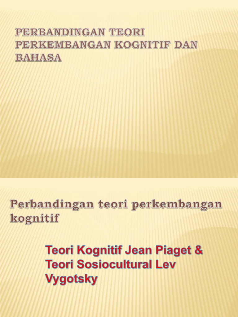Teori perkembangan kognitif jean piaget dan lev vygotsky. Piaget menekankan bahwa anak anak secara aktif membangun dunia kognitif mereka sendiri dan informasi dari lingkungan tidak begitu saja dituangkan ke dalam pikiran pikiran mereka. Kajian tentang perkembangan kognitif piaget neo piaget iaitu vygotsky dan teori pemprosesan informasi peranan metakognitif dan teori kognitif kontemporari di teliti untuk seterusnya. Pada dasarnya manusia dapat mengembangkan idea pemikiran dan pembelajaran mengikut peredaran masa dan zaman. Perkembangan kognitif merupakan perkembangan pikiran.