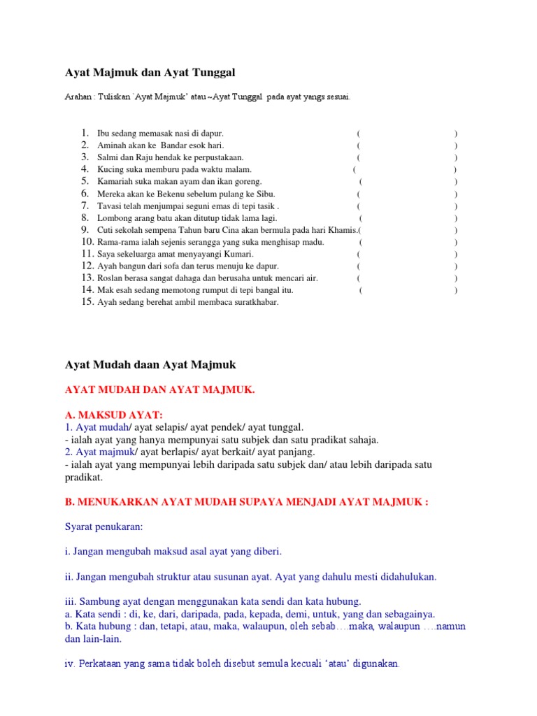 Tukarkan ayat majmuk kepada ayat tunggal. 6 markah i adakah encik amran hendak ke muzium negara atau ke putrajaya. Ayat ini juga dikenali sebagai ayat selapis. Pembentukan ayat majmuk gabungan. Ayat majmuk ialah ayat yang dibina dengan mencantumkan dua atau lebih ayat tunggal ayat ayat di dalam sesuatu ayat majmuk dicantumkan menggunakan kata hubung yang dan kerana supaya atau sambil terdapat tiga jenis ayat majmuk iaitu.
