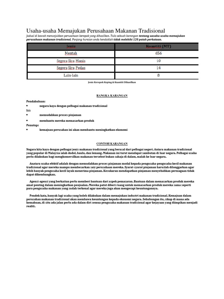 Dalam kita memajukan industri makanan tradisional ini kita boleh mempelbagaikan produk industri makanan yang sedia ada. Wong li ting no kad pengenalan. Karangan rencana tentang usaha usaha untuk memajukan industri makanan tradisional on. Kemajuan dalam perusahan makanan tradisional akan membawa keuntungan kepada ekonomi negara.