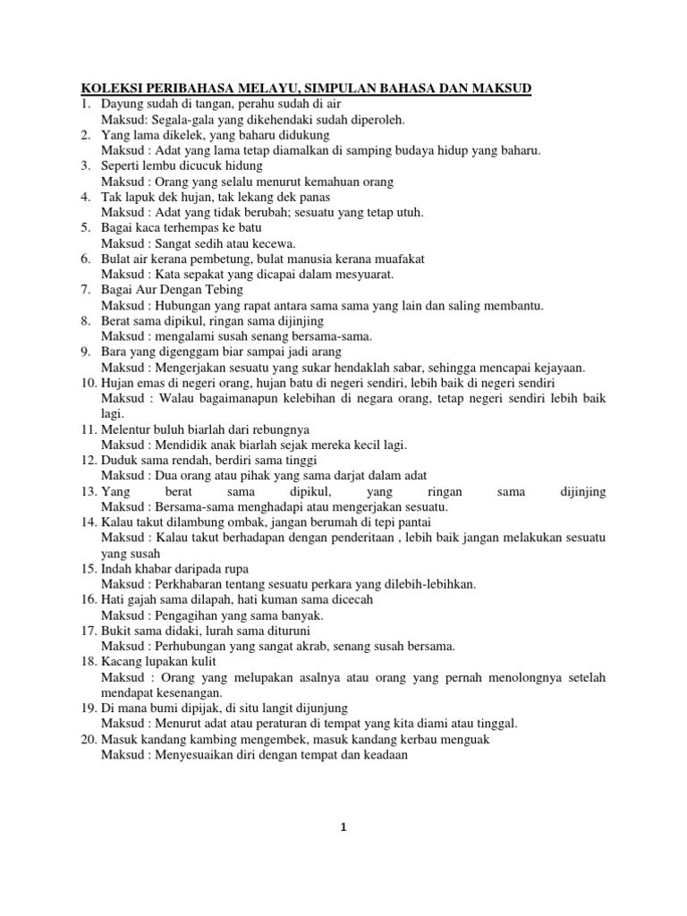 Tak lapuk dek hujan tak lekang dek panas maksud. Yang lama dikelek yang baharu didukung maksud. Sesuatu yang tetap utuh. Adat lama tetap diamalkan di samping budaya hidup yang baharu.